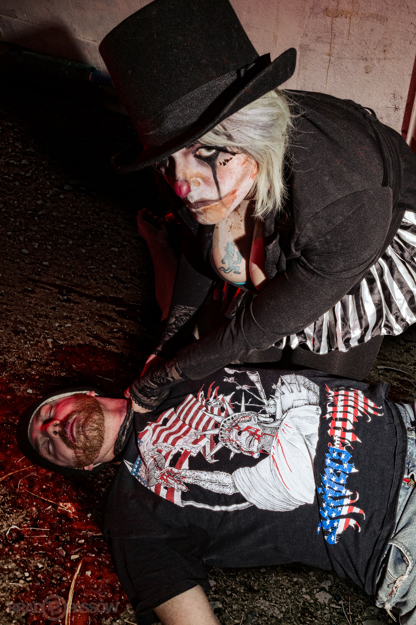 When I was first invited to this shoot by Mungy The Clown I thought we were doing a little post-Halloween haunted house style shoot, but by the time the actual event day rolled around it ended up being a production day for a film short called “Shudder” by Michael Wulf and Renegade Studios / BlackHeart Films. As they would complete a scene for the film I would step in and shoot a quick still inspired by the scene, and then at the end of the day I grabbed a few more shots of the cast as well. The film included Justin Mitchell, Naomi Brubaker, Alexander Bourne Brotherton, Keri Cole, Nate Karny Cole, Brenna Hoch, Devi Du’Ville, Mike Campbell, and Aaron Wright.